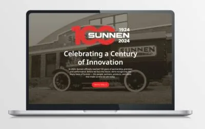 In our final logo, a red “100” took center stage. The bold numeral incorporated radiating lines that nodded to Sunnen’s iconic sunburst. The company anniversary logo featured a cutout between the zeros that left space for “Sunnen” in a modern, sans-serif typeface. The years “1924” and “2024” were stacked vertically to denote Sunnen’s inception as well as its centennial celebration.