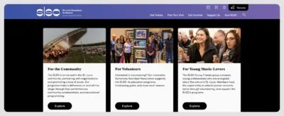 Ultimately, the Saint Louis Symphony Orchestra website design reflects transition, while stirring excitement through pops of color and photography.