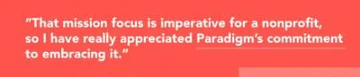 To be able to market and brand a mission, you have to be able to feel it — beyond what’s on a piece of paper. That mission focus is imperative for a nonprofit, so I have really appreciated Paradigm’s commitment to embracing it.
