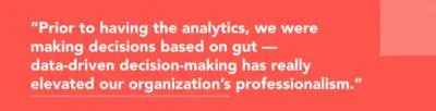 Also, the monthly and quarterly analytics are supporting our desire to make decisions based on data. Prior to having the analytics, we were making decisions based on gut — data-driven decision-making has really elevated our organization’s professionalism.
