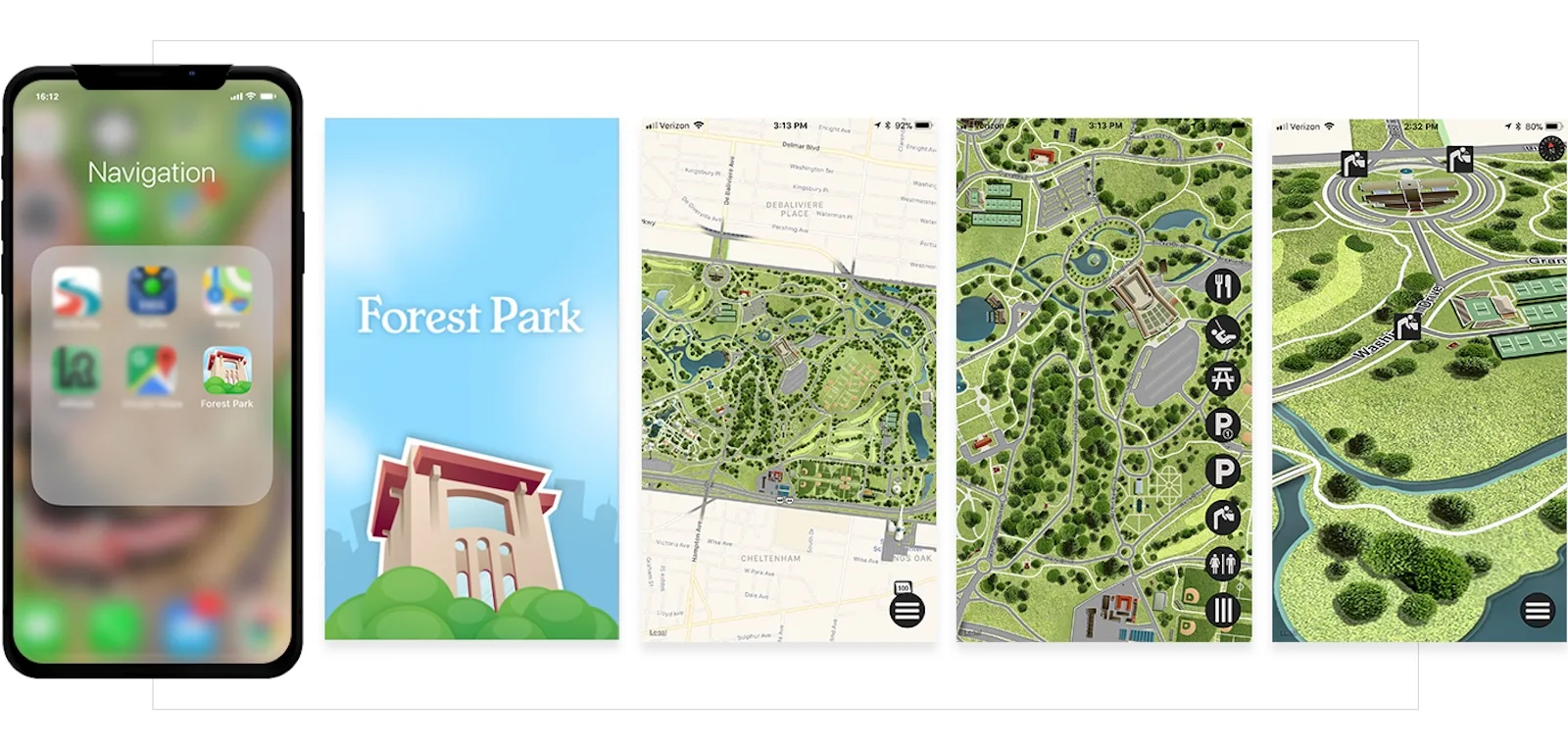 We developed a custom iOS app that presents Forest Park as an interactive directory, helping users map out park attractions, bike routes and more.