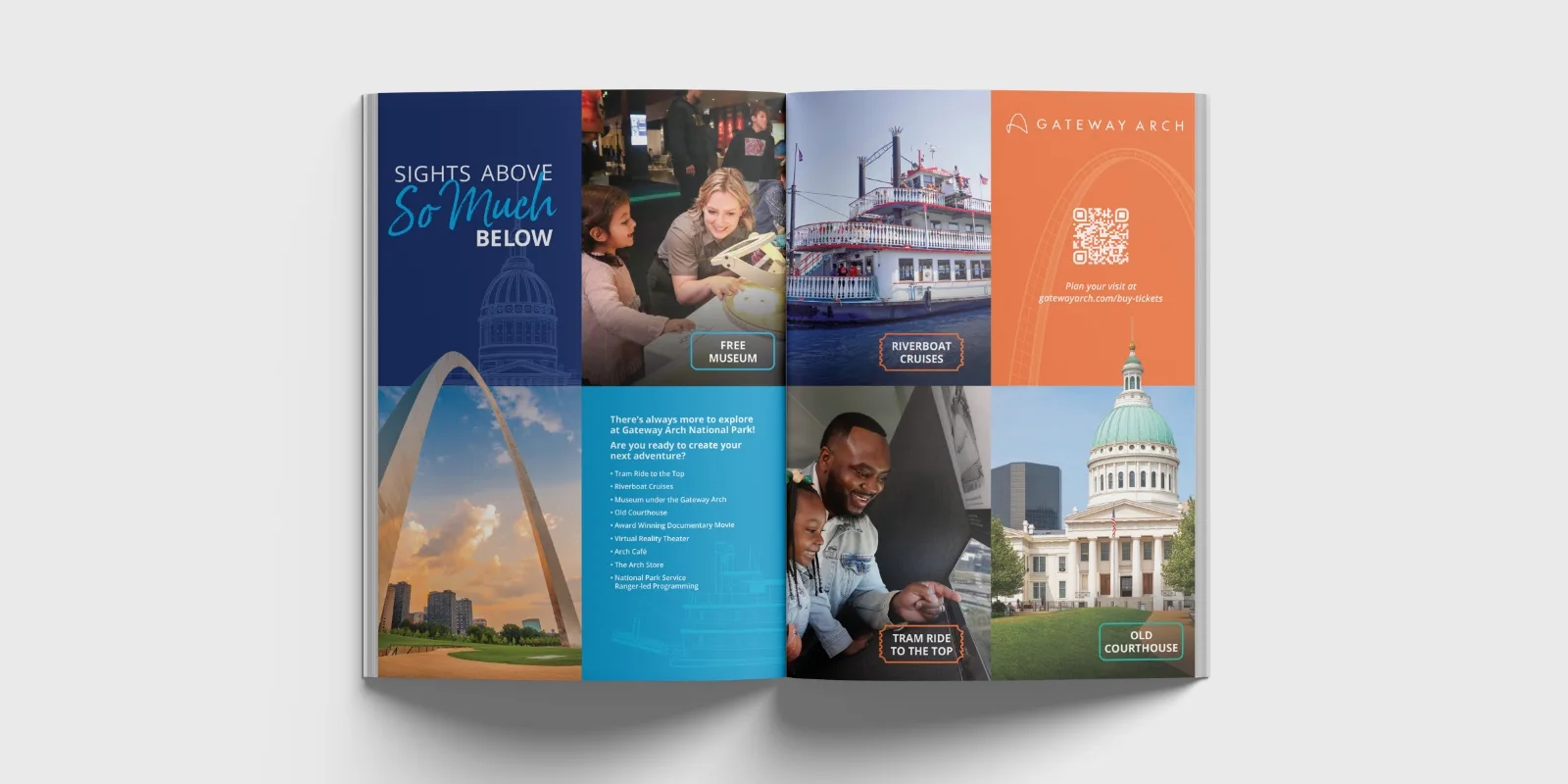 We focused on developing content that would feature all of the Gateway Arch National Park. From the Riverboat tours and national park grounds to the Virtual Reality Theater and infamous Tram Ride to the Top, we showcased each element visitors can explore through a variety of marketing materials.