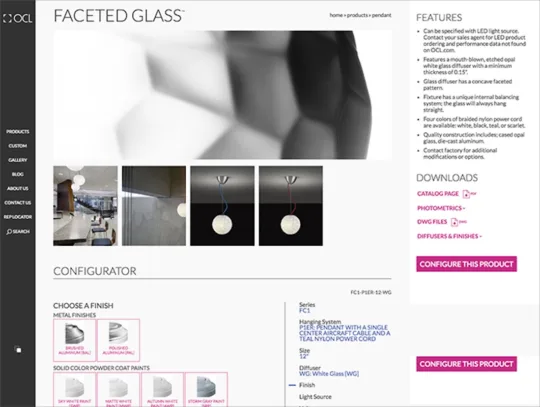 Paradigm was tasked with creating an easier, more inspiring way for architects and designers to browse OCL’s extensive catalog and customize products to their exact specifications.