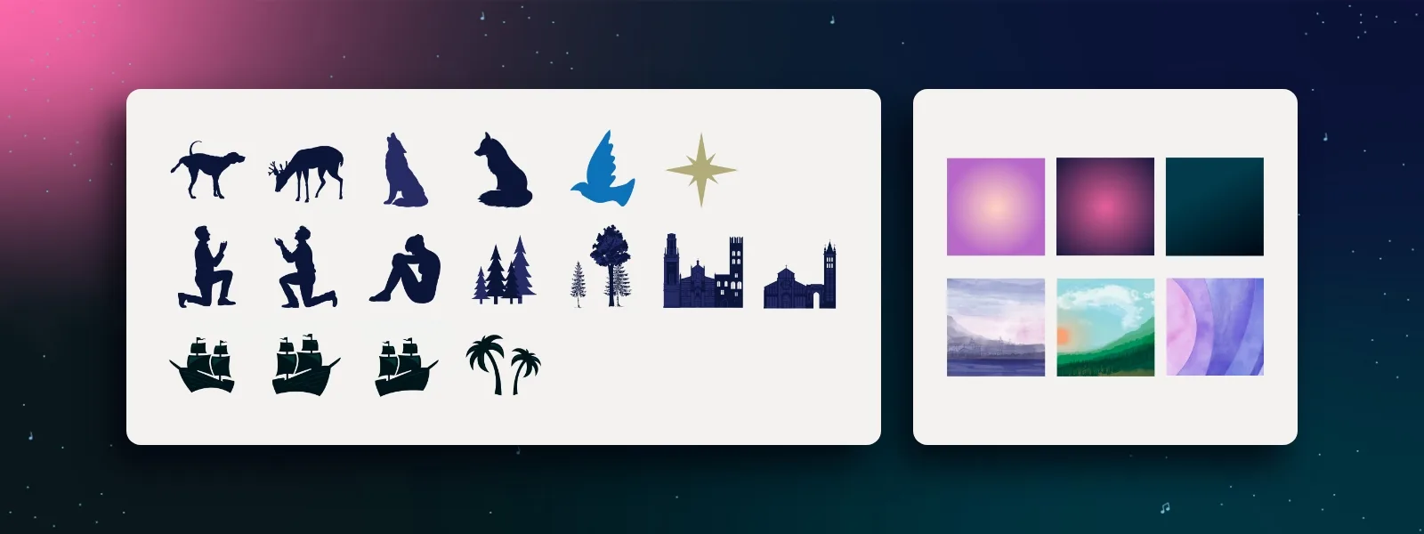 Our 2026 season guidelines covered typography, color palettes, production wordmarks and iconography. Notably, our designers highlighted visual components to be shared across major productions. The use of stars, music notes, watercolor fills and low-contrast gradient backgrounds would keep all productions visually complementary.